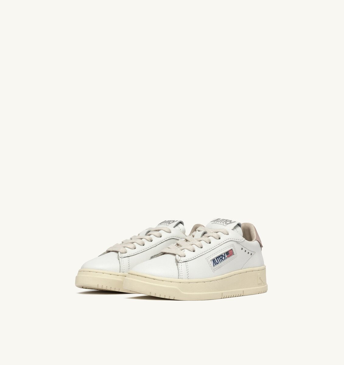 The Dallas sneakers for kids blends American sports culture and the authenticity of artisanal craftsmanship. This mini-me shoe is crafted in white and powder pink leather, featuring a smooth toe and visible stitching.