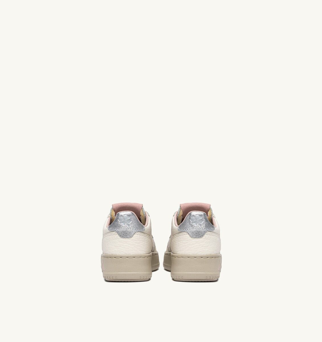 The upper is crafted from ivory white leather with a natural grain, offering a unique look and exceptional softness for a refined finish. The padded collar ensures comfort, while perforations at the toe improve breathability.