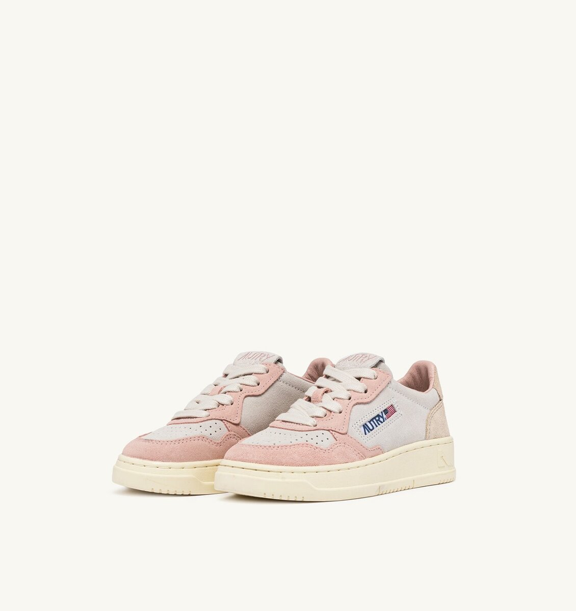 Made of white, beige and pink suede, they rest on a comfortable rubber sole and stand out for the authentic details and typical Autry logo.