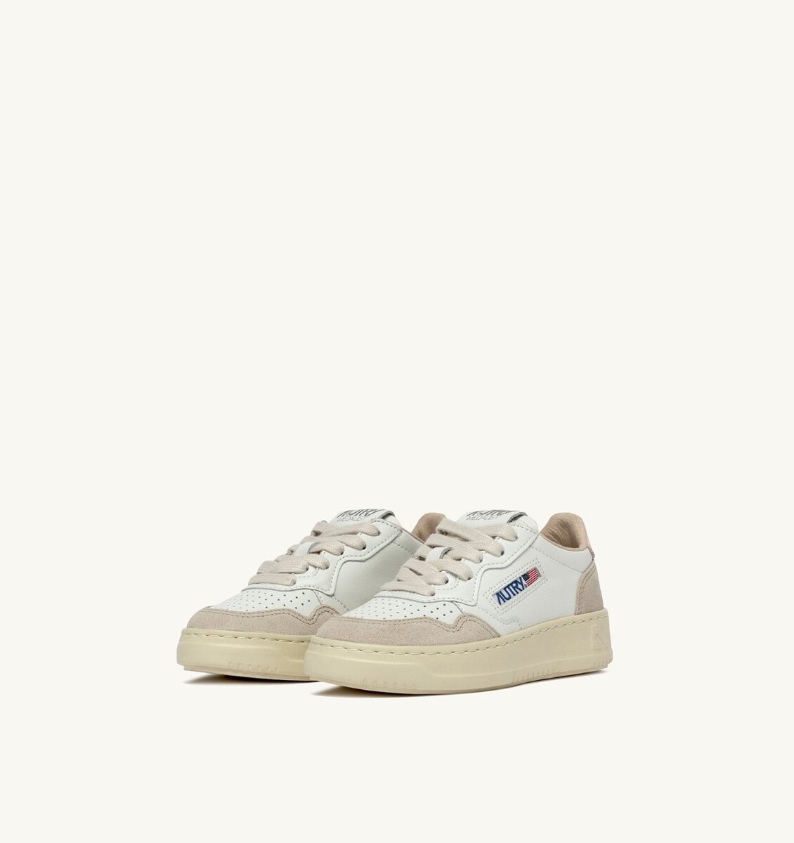 MEDALIST KIDS LOW SNEAKERS IN WHITE AND CREOLE PINK SUEDE