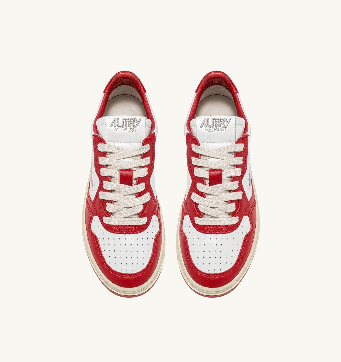 MEDALIST LOW BICOLOR SNEAKERS IN WHITE AND RED LEATHER