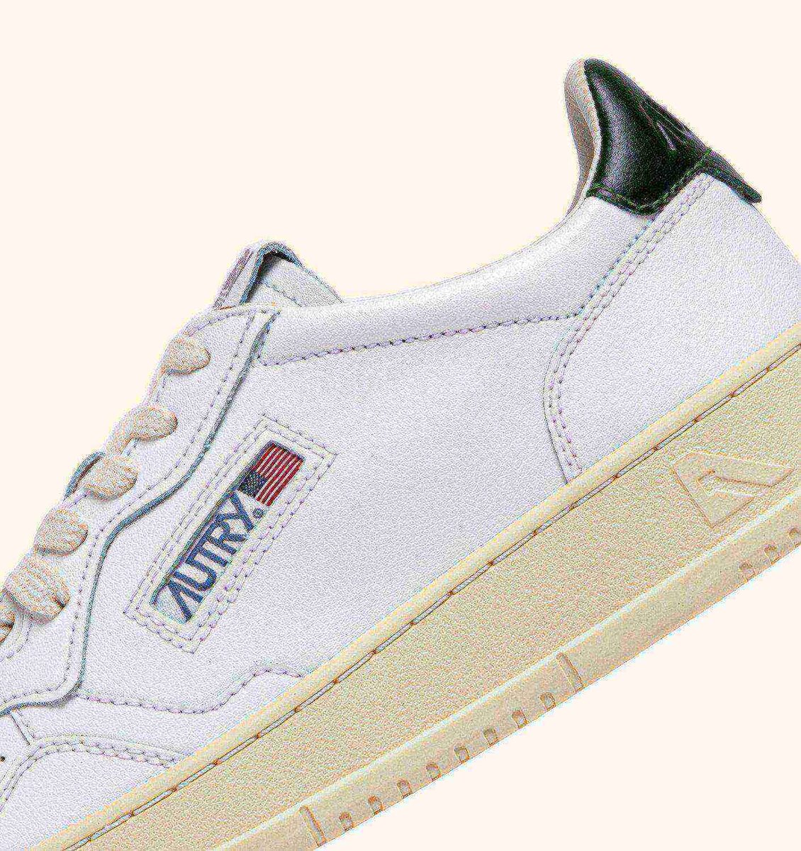Green leather accents on the outer side and heel are customized with the Autry logo.