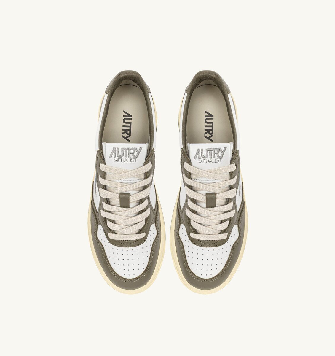 Elevate your everyday style with Autry’s Medalist. This men’s sneaker features a white leather upper, finished with green inserts that give it a bold and graphic note.