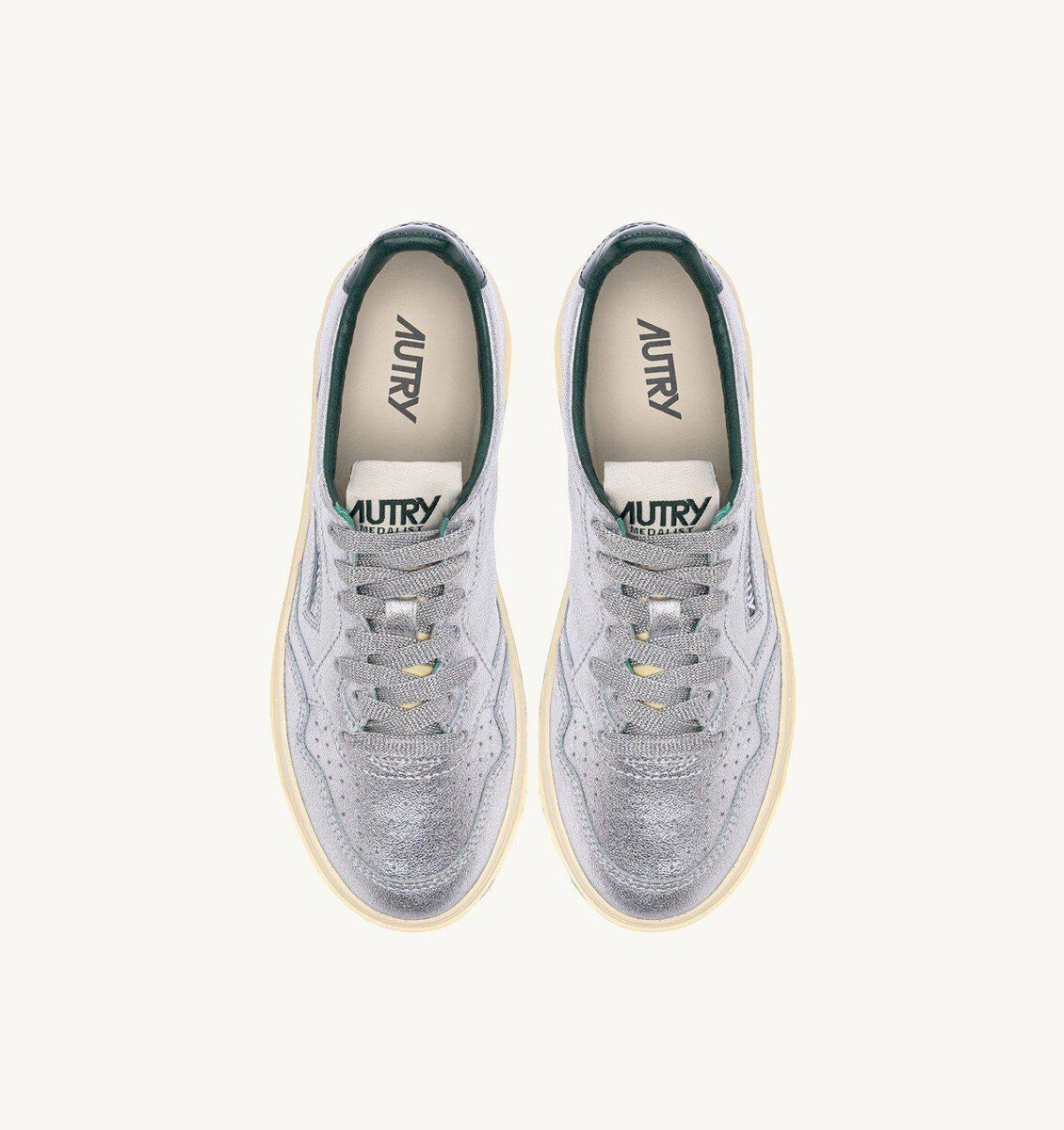 MEDALIST LOW SNEAKERS IN SILVER AND BOTTLE METALIZED LEATHER