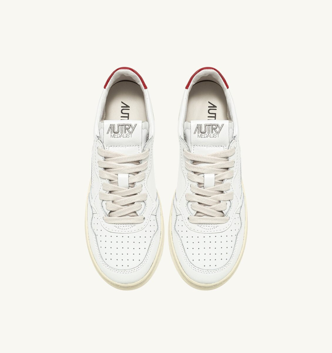 MEDALIST LOW SNEAKERS IN WHITE AND RED LEATHER