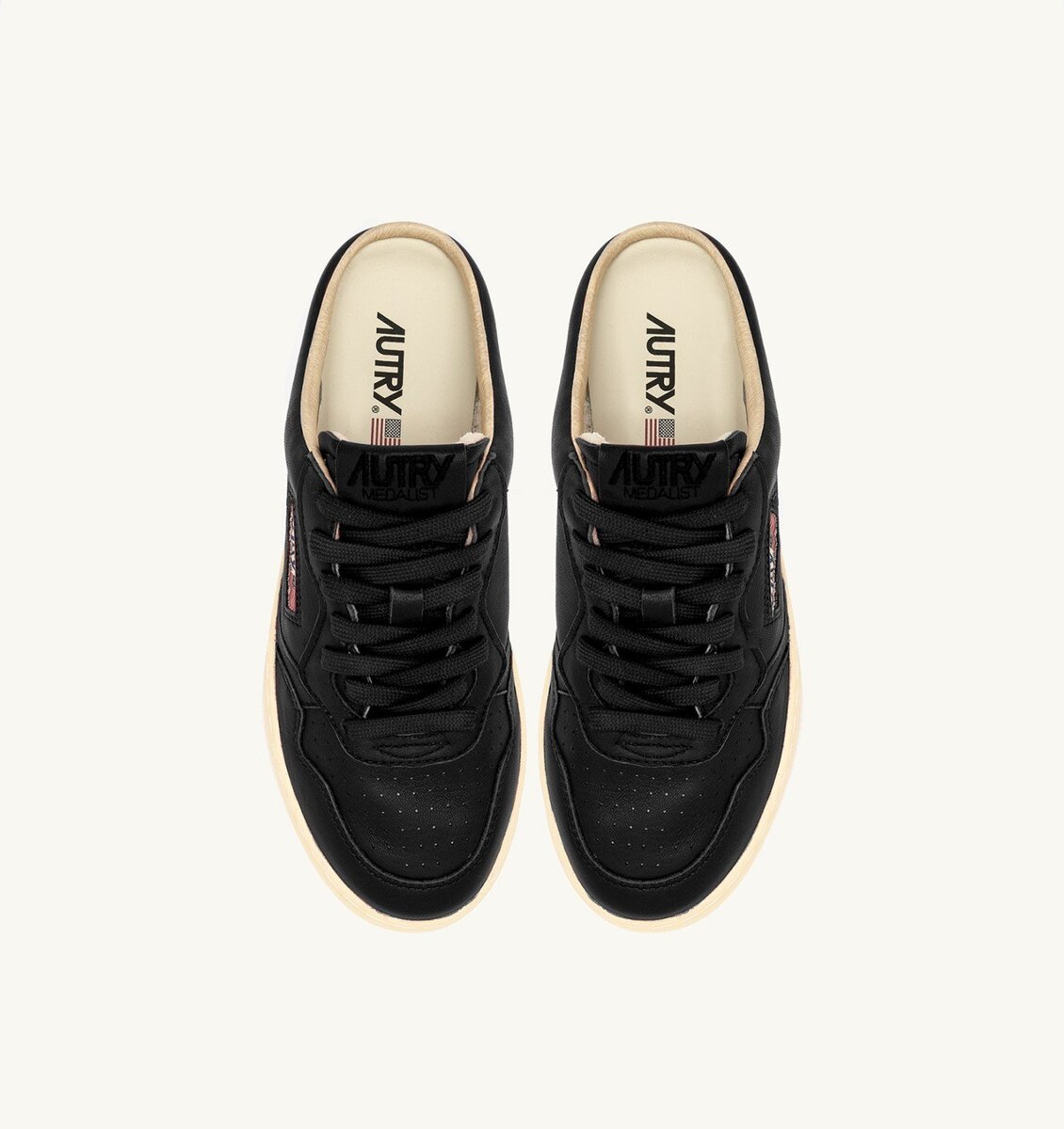 MEDALIST MULE SNEAKERS IN BLACK NAPA LEATHER