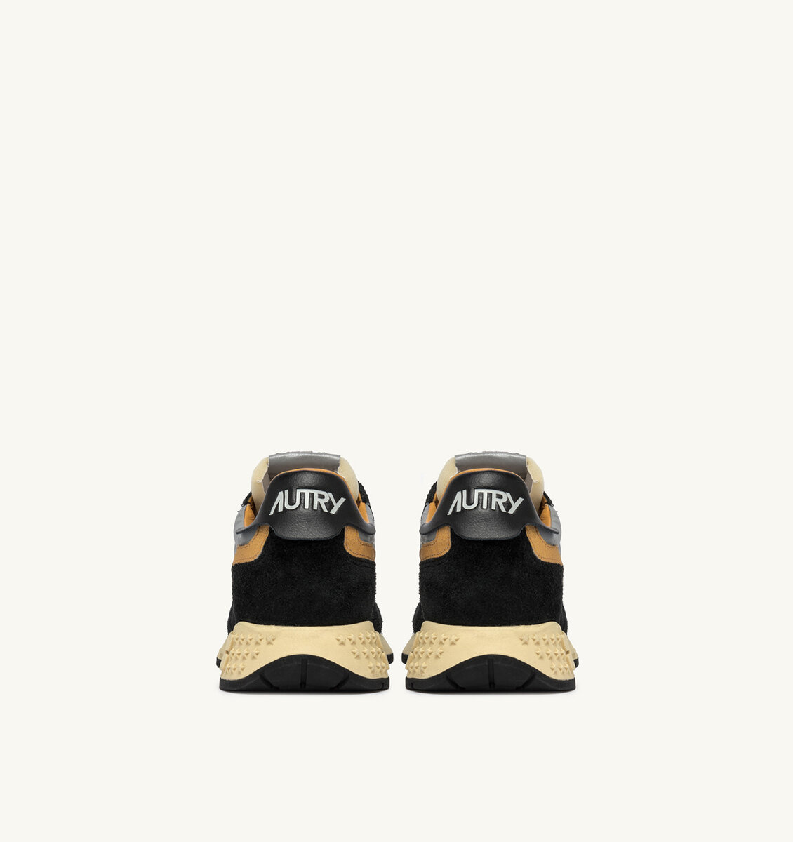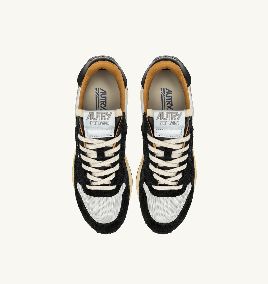 The Reelwind combines the technical qualities of high-performance running shoes with Autry’s distinctive aesthetic codes and quality construction. This men’s sneakers is crafted from reflective gray nylon, reinforced with suede and cracked leather inserts that form a black panelled design.