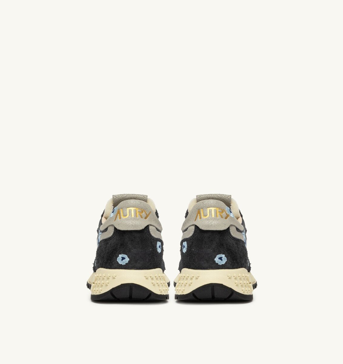 Innovative, light and extremely flexible, Reelwind Autry sneakers draw inspiration from the running world. The men’s style is crafted from a mix of blue nylon and suede, with side panels in gray suede and enriched by original embroidery flowers and a removable logo charm.