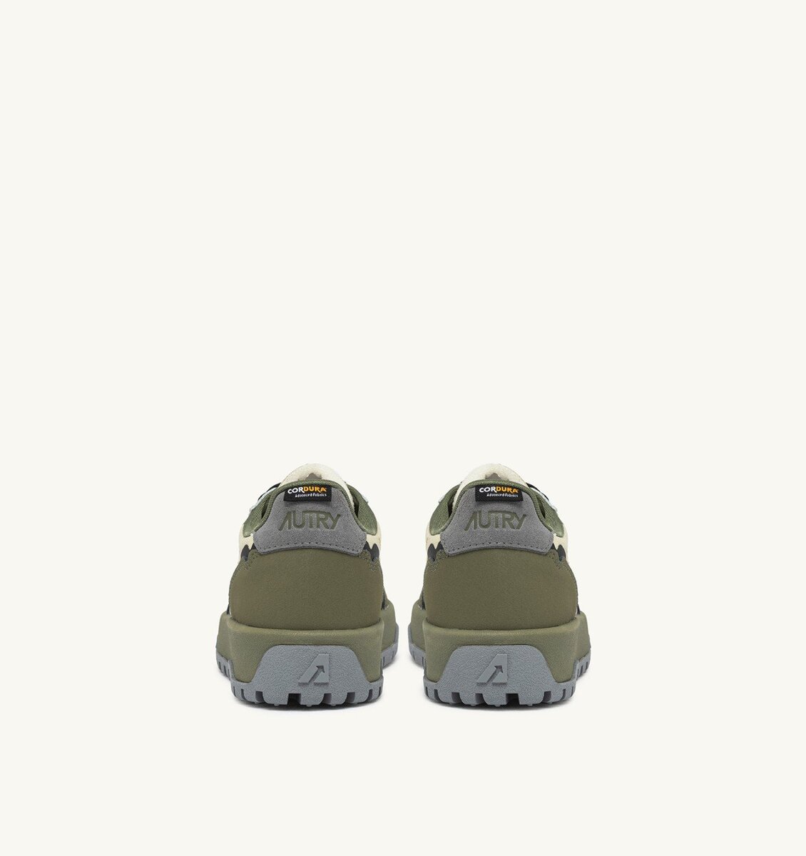 The new Autry Wildpace style stands out for its outdoor-inspired design, featuring technical details that enhance performance. Crafted from beige ripstop nylon and green leather, this sneakers is enhanced with TPU-coated details, a side insert with the Autry logo in silicone, and a suede heel tab with an embossed logo.