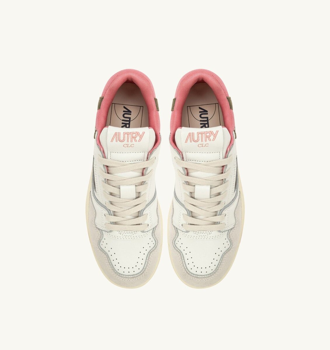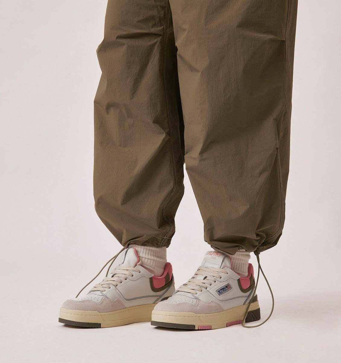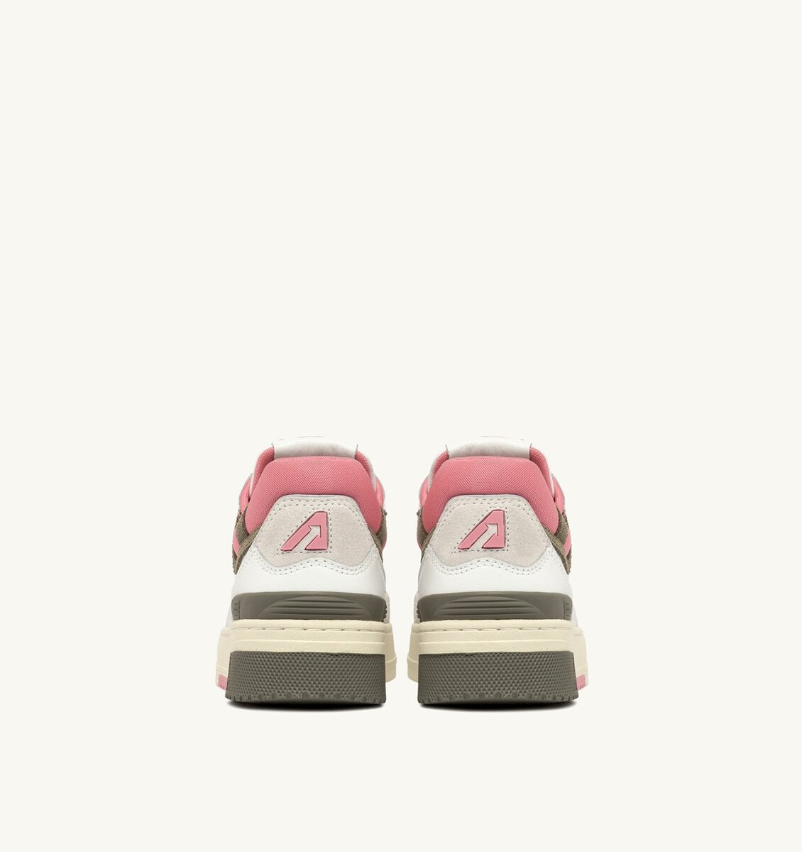 CLC sneakers come as a reinterpretation of the classic Medalist with added volume; CLC stands for Counter-Lock-Cord and refers to the ankle reinforcement typical of basketball shoes. This women’s design is crafted from white leather with hunter green suede and color matching inserts at the heel and toe, characterized by a bold and welcoming shape with a padded mesh ankle collar and internal support that provides additional heel support.