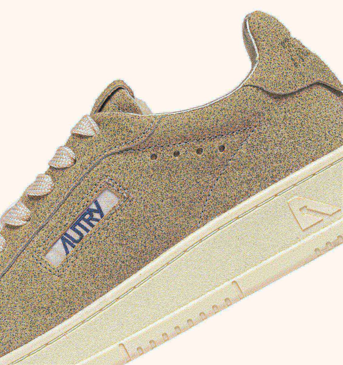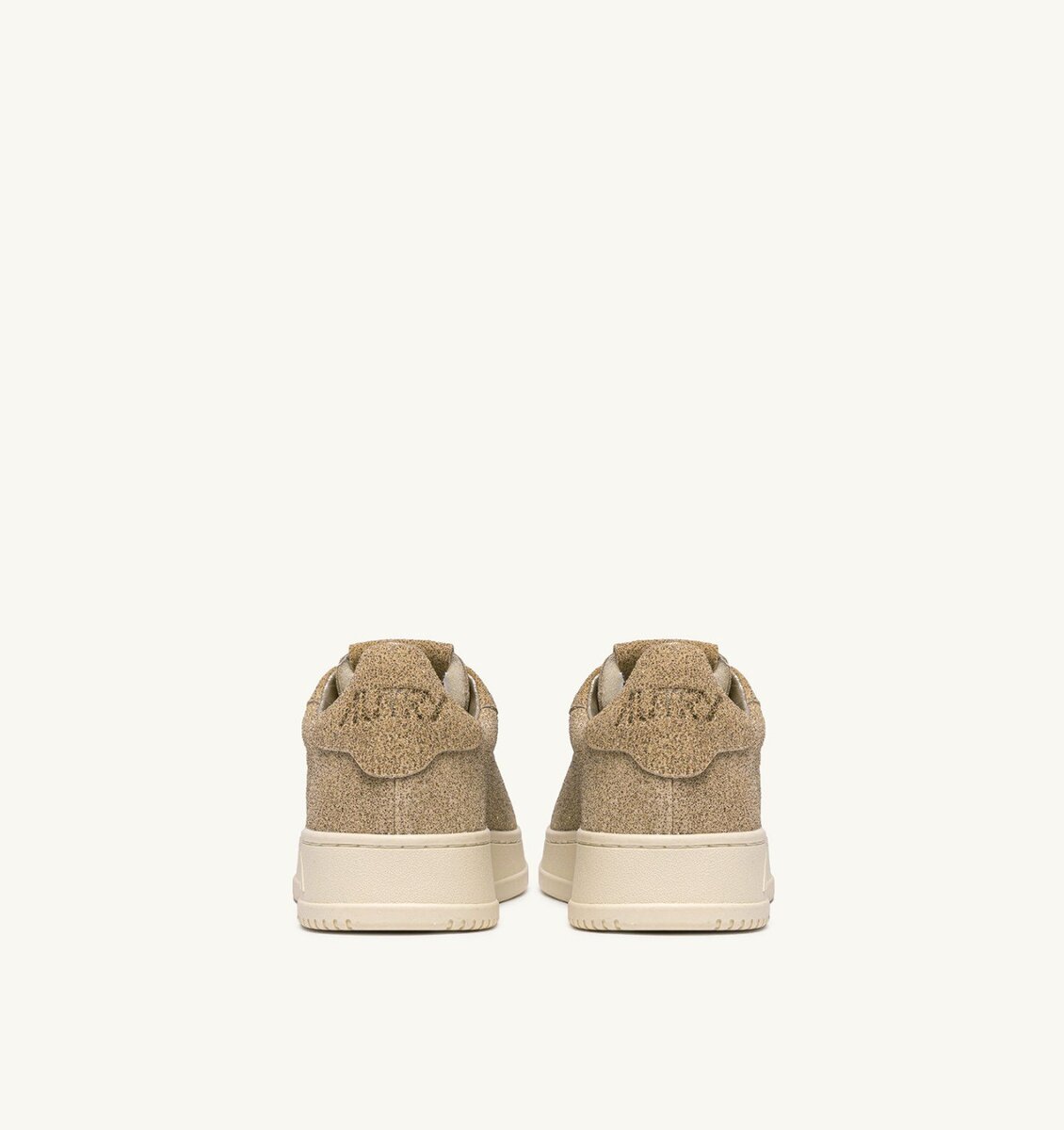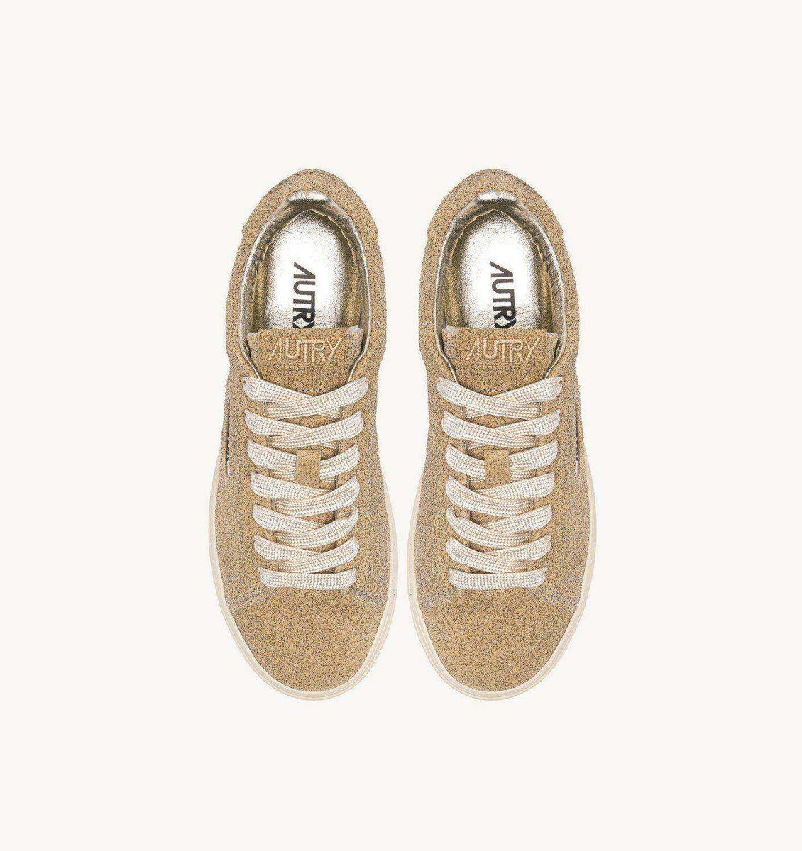 The upper is made from glitter-effect suede with a sparkling appearance, enriched by the heel tab featuring the embossed Autry logo—a detail that gives it an authentic look. The side detail with the jacquard Autry logo and the tone-on-tone tongue with the logo label add the finishing touch.