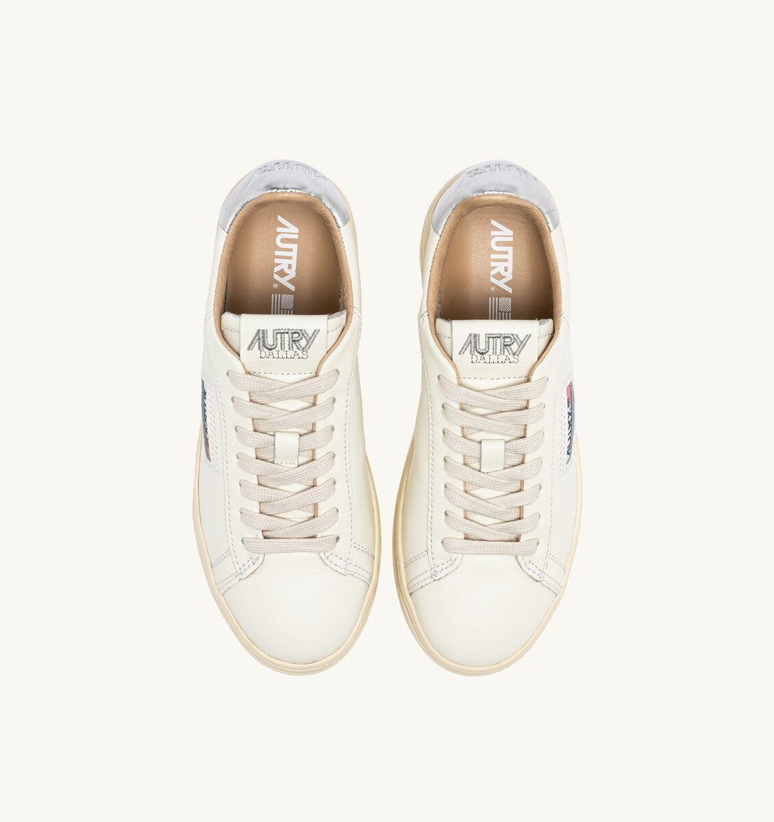 DALLAS LOW SNEAKERS IN WHITE AND SILVER LEATHER