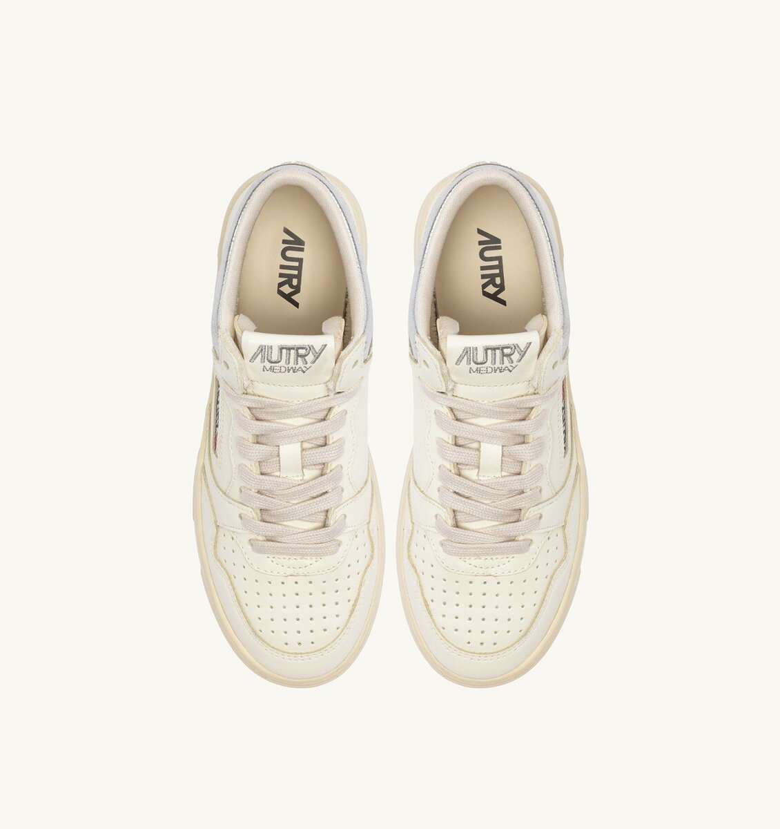 MED-WAY SNEAKERS IN LEATHER COLOR MARSHMALLOW AND SILVER