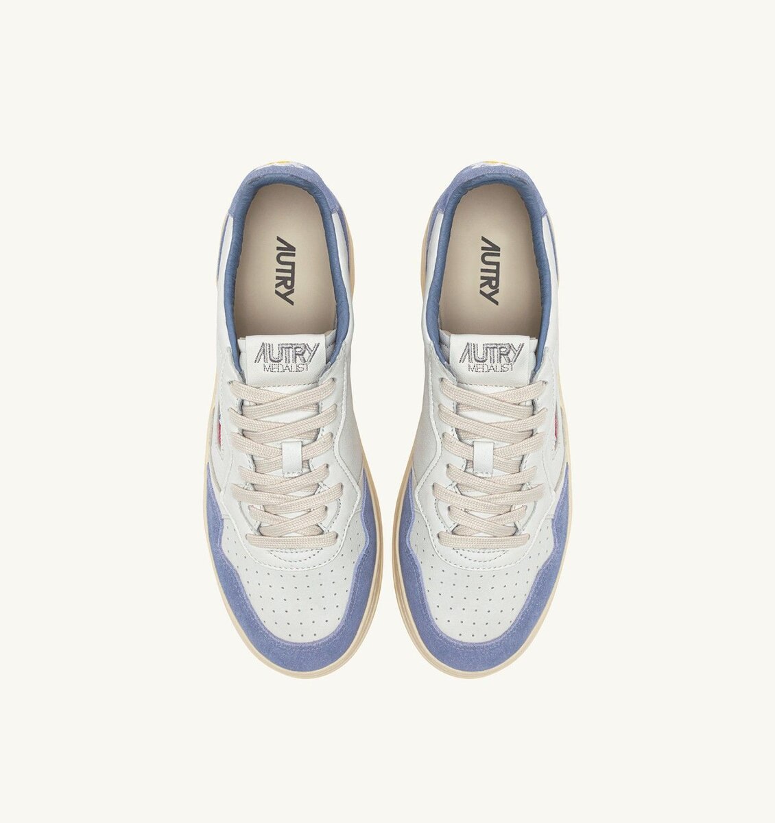 La Medalist d’Autry inaugure une nouvelle ère de style et de confort. Avec son profil bas à la cheville, cette basket pour femme est confectionnée en cuir de chèvre blanc souple et présente des empiècements en daim bleu ciel qui soulignent l’empeigne.