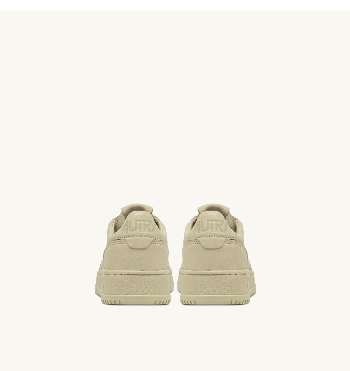 Cette basket pour femme est fabriquée en peau de chèvre beige douce et présente une finition à effet mat qui recouvre entièrement la tige et la Semelle en caoutchouc.L’embout avec des micro-trous augmente la respirabilité, tandis que le détail latéral se distingue par le logo Autry caractéristique.