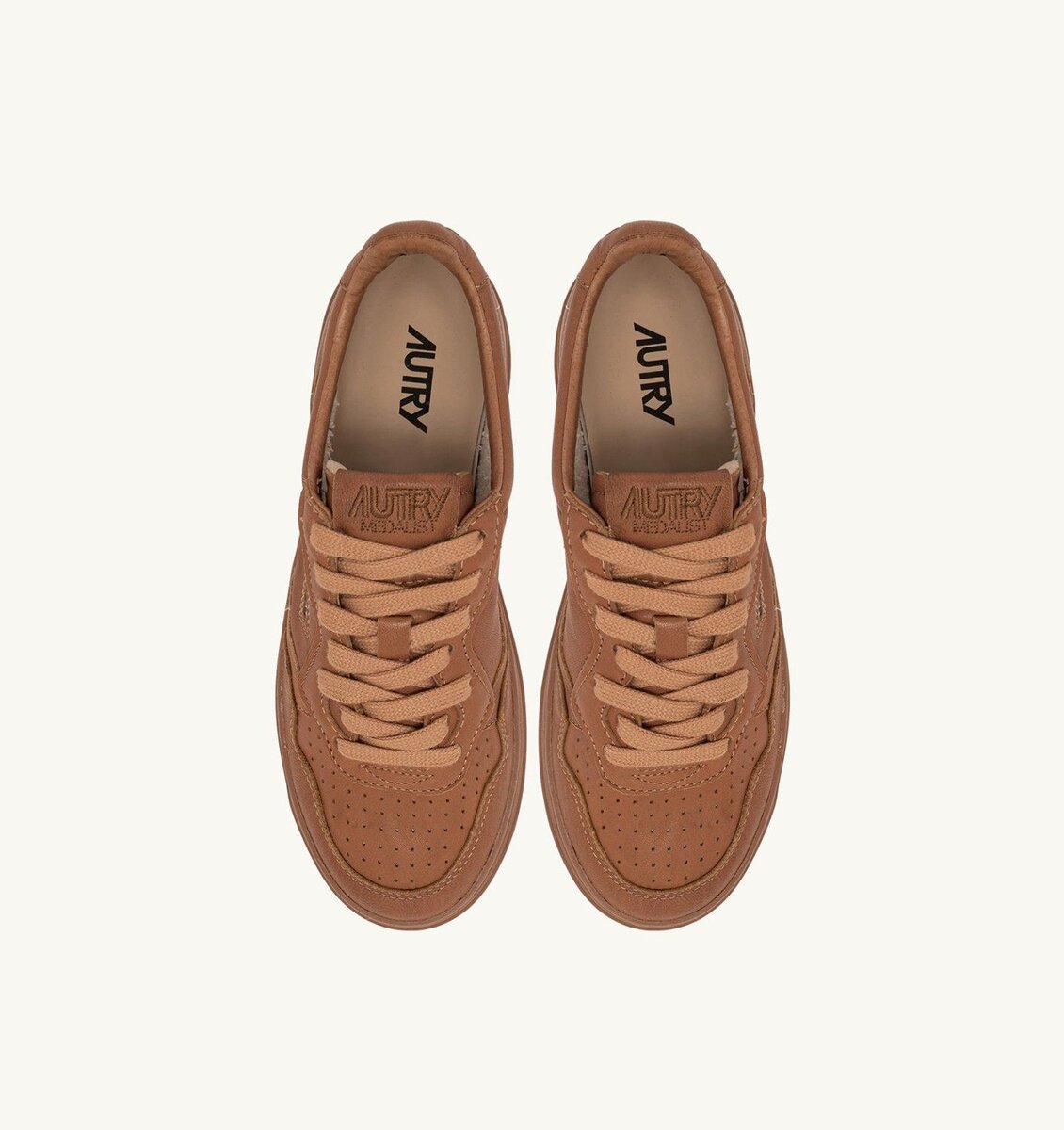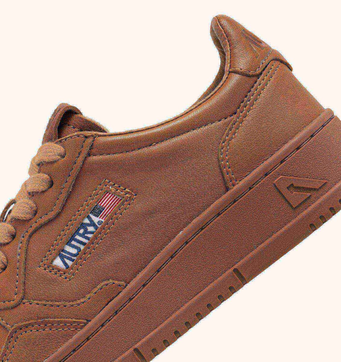 Cette basket pour femme est réalisée en peau de chèvre orange douce et présente une finition à effet mat qui recouvre entièrement la tige et la Semelle en caoutchouc.L’embout avec des micro-trous augmente la respirabilité, tandis que le détail latéral se distingue par le logo Autry caractéristique.