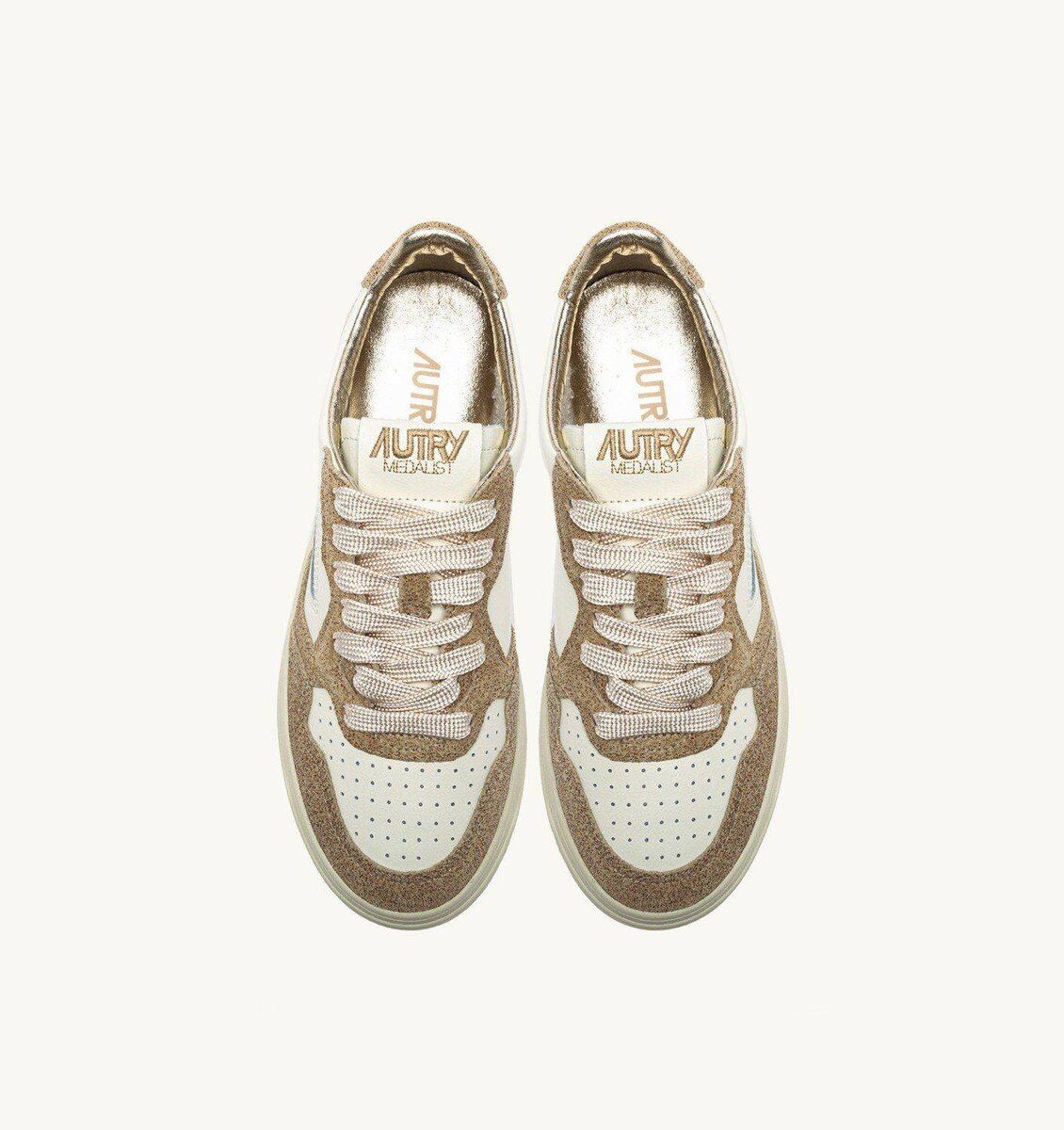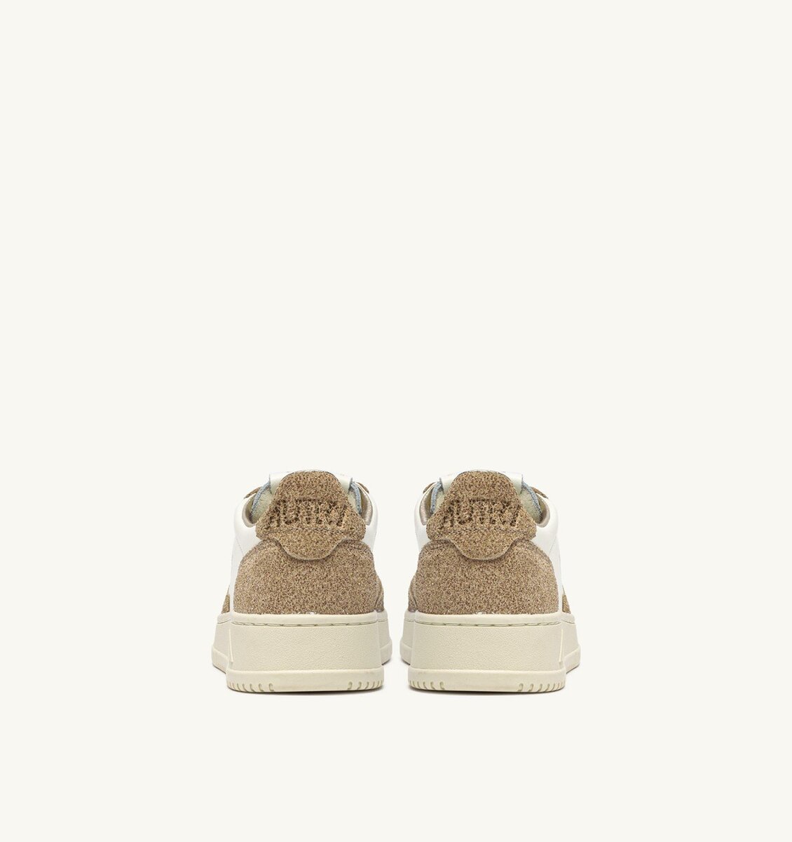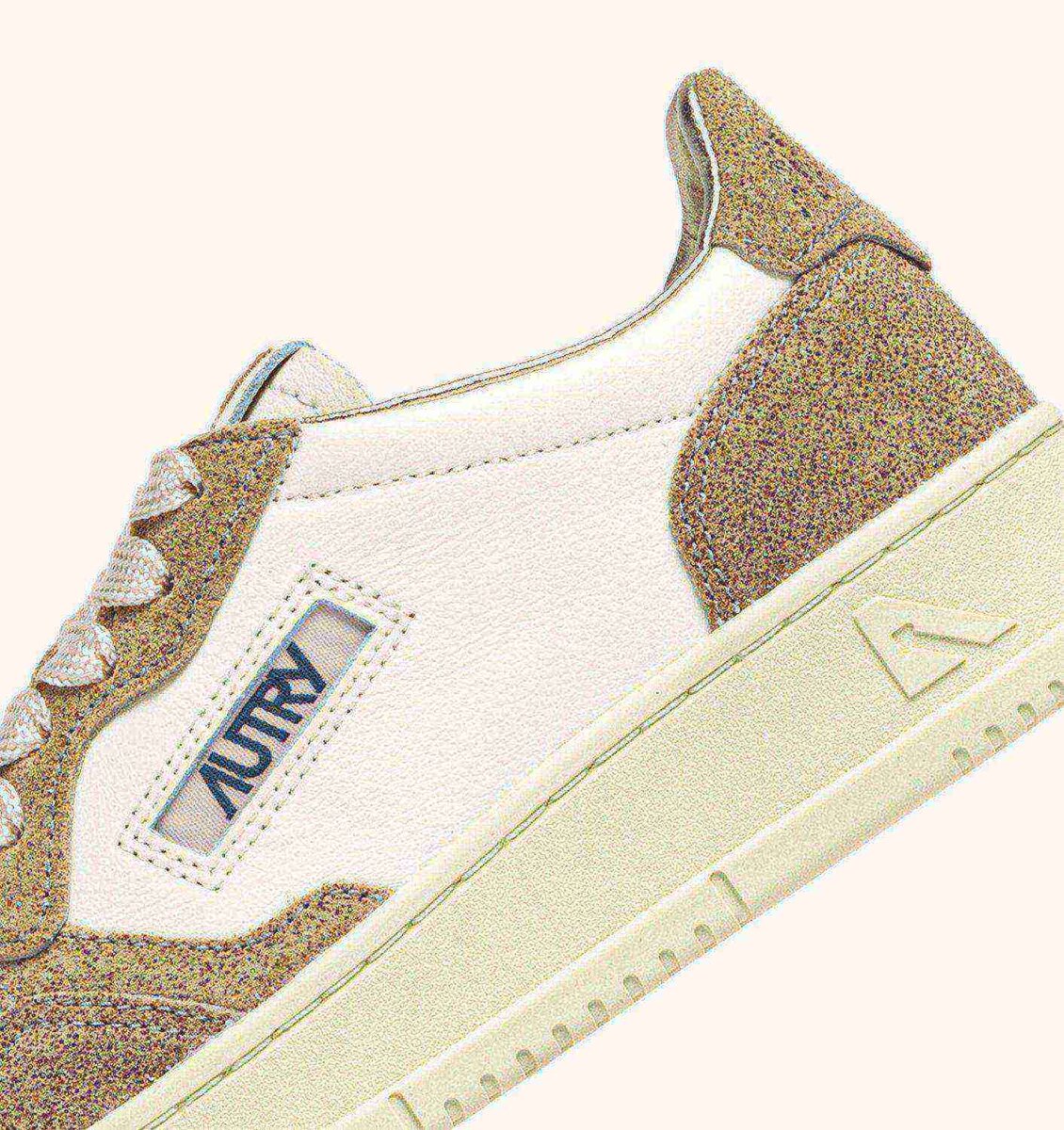 MEDALIST LOW SNEAKERS IN LEATHER MARSHMALLOW AND SAND GLITTER