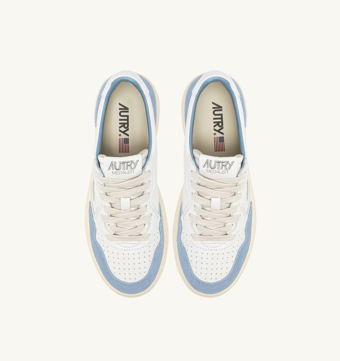 Autry Medalist heralds a new era of style and comfort. Featuring a low-top profile, this women’s athletic shoe is crafted from white goatskin with light blue suede inserts and features a white heel tab defining the upper.