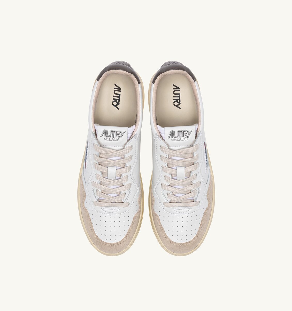 MEDALIST LOW SNEAKERS IN WHITE AND MOREL SUEDE AND LEATHER