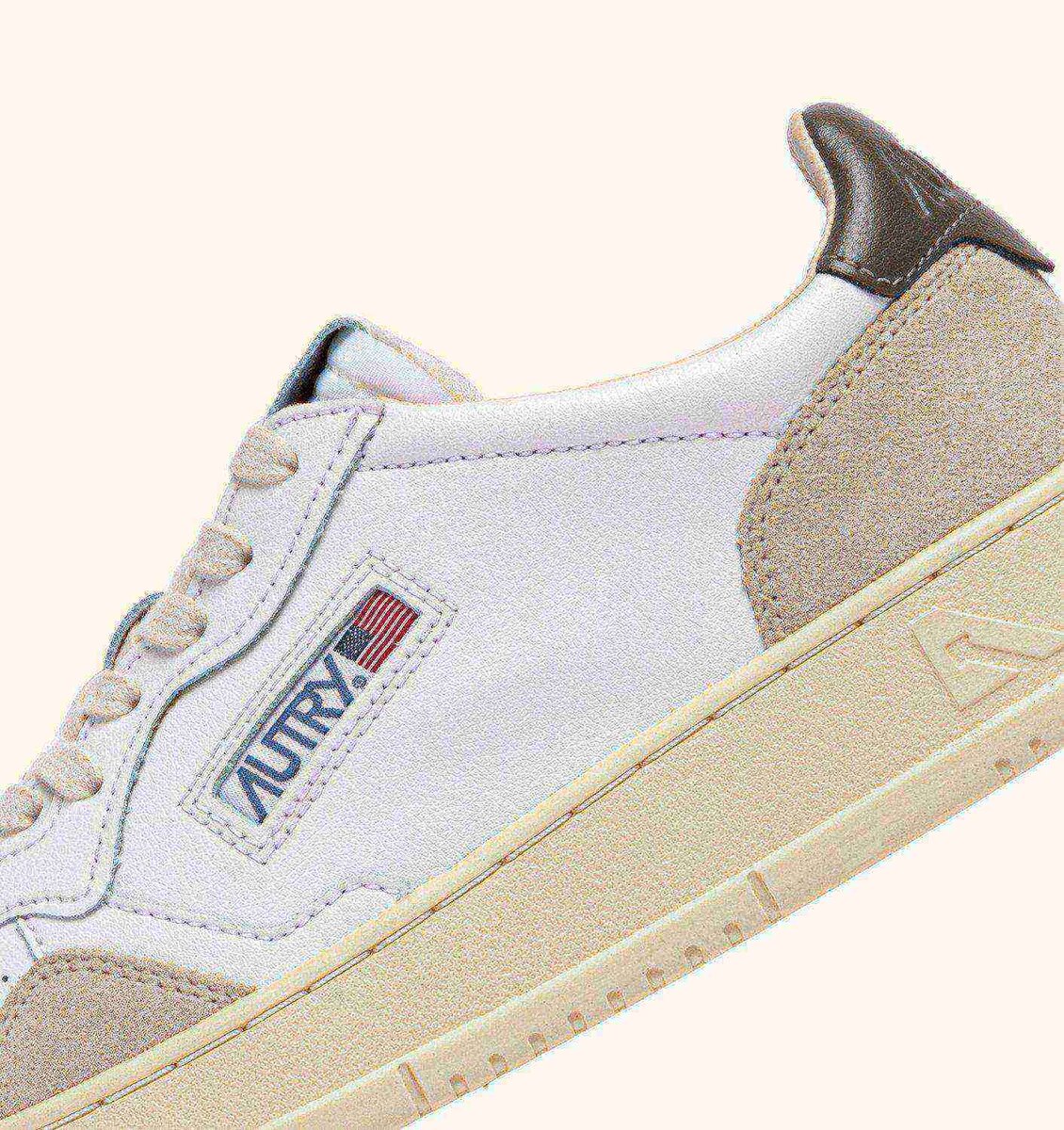 A brown leather detail decorates the heel, personalized with the Autry logo.