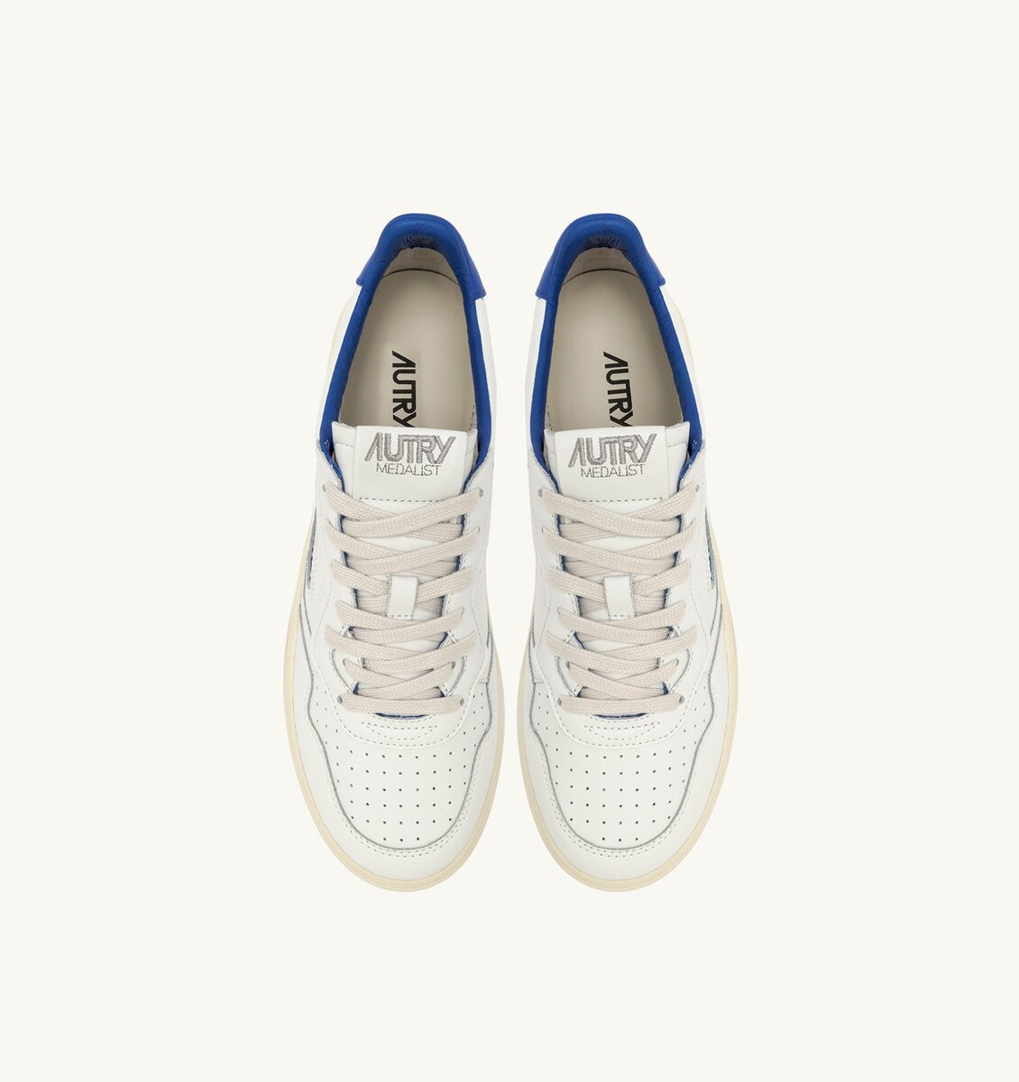 For true collectors: Medalist women’s sneakers return with a winning slogan. The soft white leather upper is enriched by micro-holes on the toe and a blue logo tab on the heel, for an essential but captivating look.