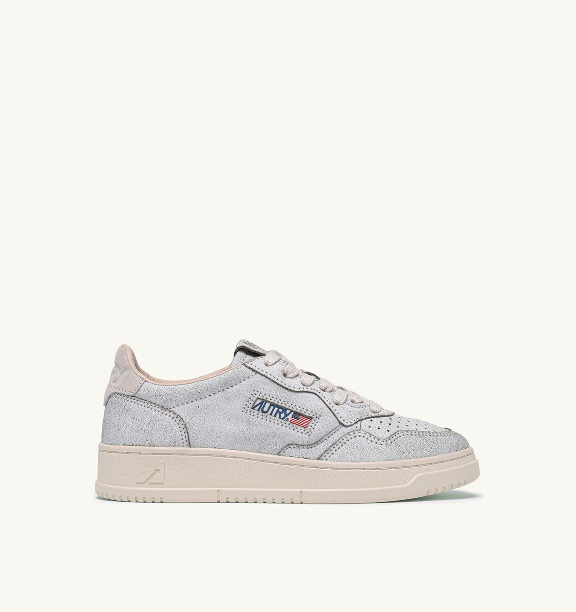 The iconic imagery of tennis lies at the core of Autry’s collections. Reimagined for contemporary style, these Medalist sneakers stand out with a light gray suede upper featuring a refined scraped effect, giving the shoe an avant-garde, urban attitude.