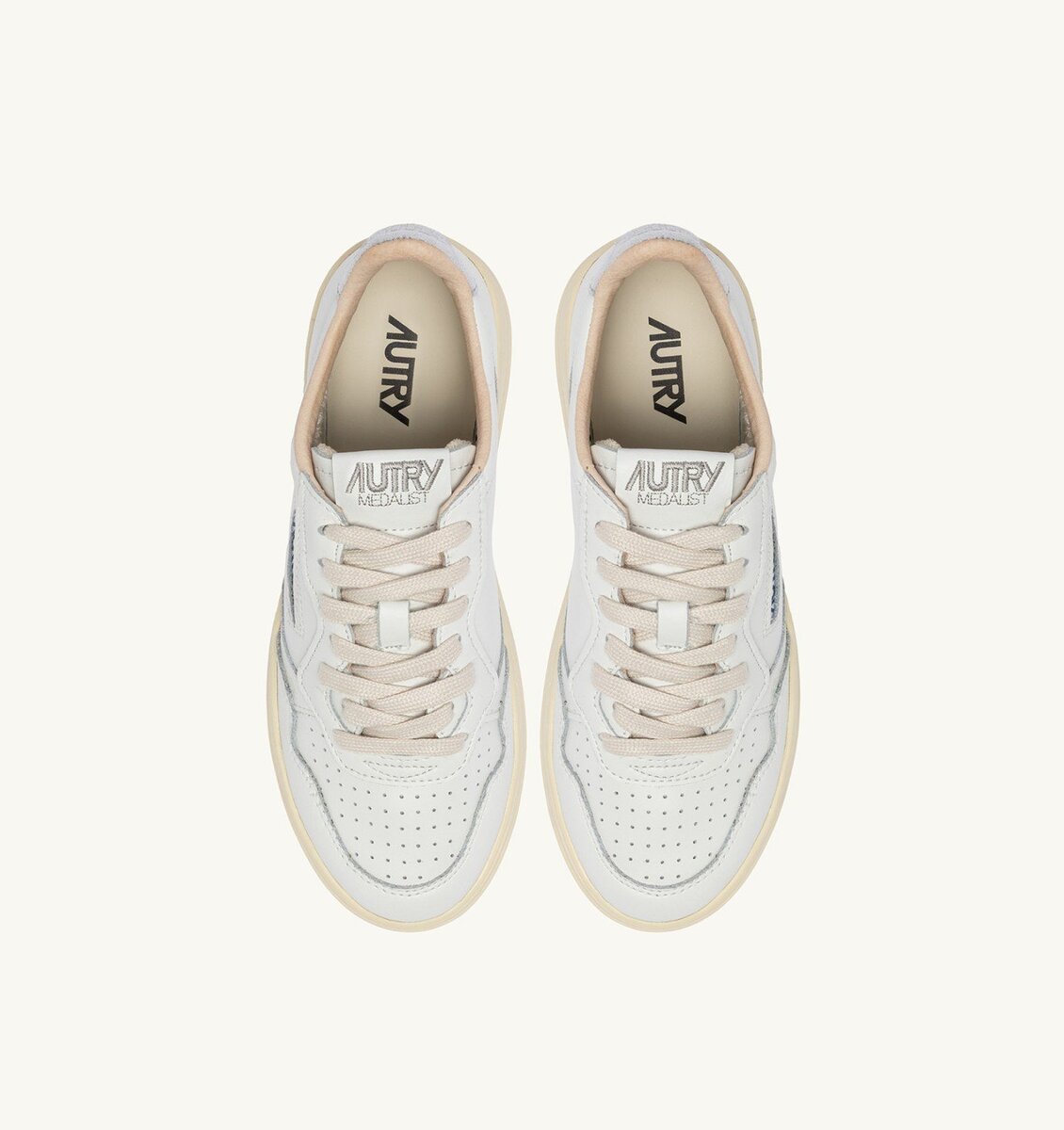 For true collectors: Medalist women’s sneakers return with a winning slogan. The soft white leather upper is enriched by micro-holes on the toe and a silver tab on the heel, for an essential but captivating look.