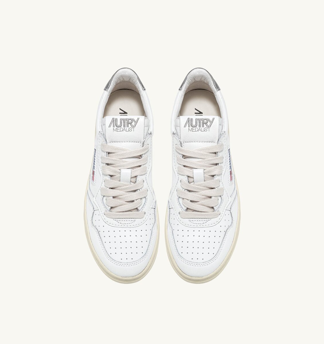 Wear it every day with your favourite off-duty and smart casual outfits. These women’s sneakers are crafted from supple white leather that’s minimally treated for a natural finish and detailed with a perforated toe for breathability. The silver laminated heel tab adds subtle shine to the look.