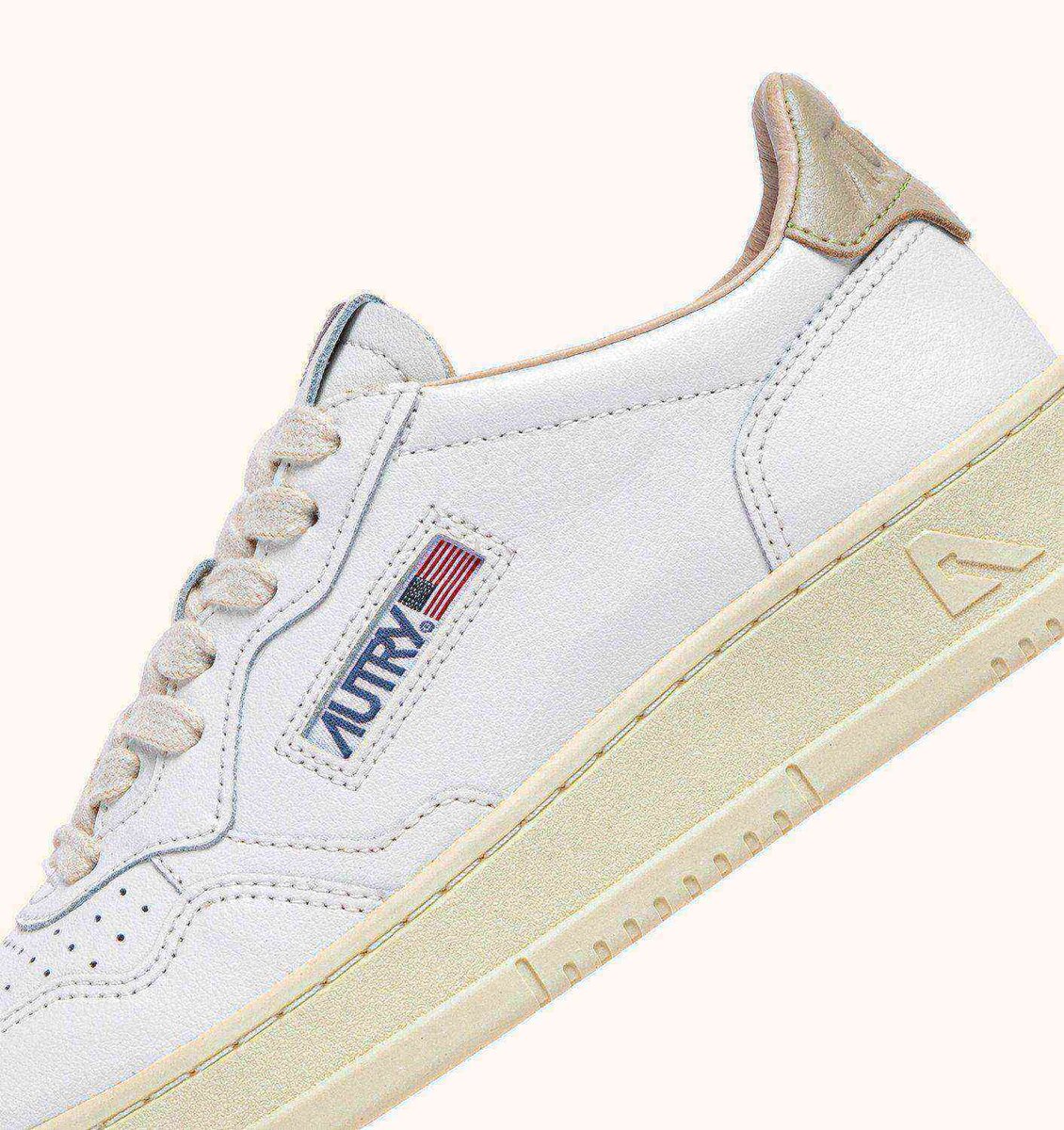 Beige leather accents on the outer side and heel are customized with the Autry logo.