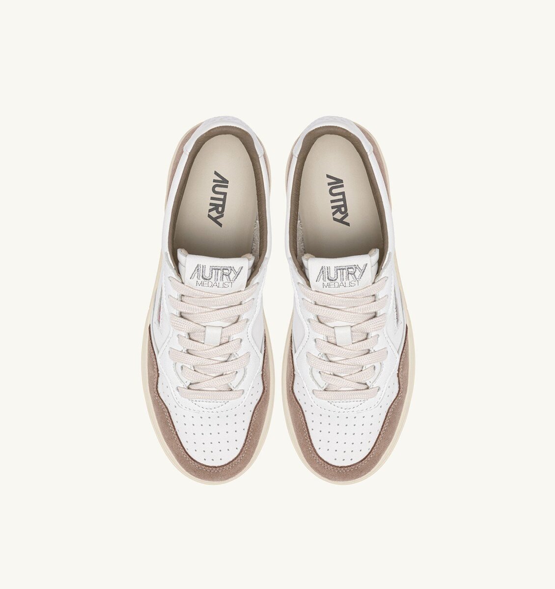 MEDALIST LOW SNEAKERS IN WHITE LEATHER AND TOBACCO SUEDE