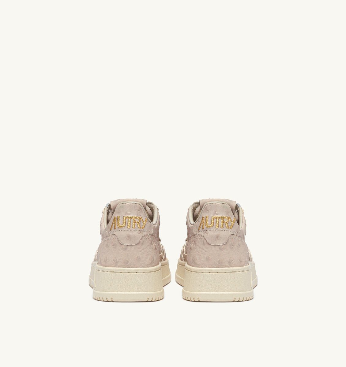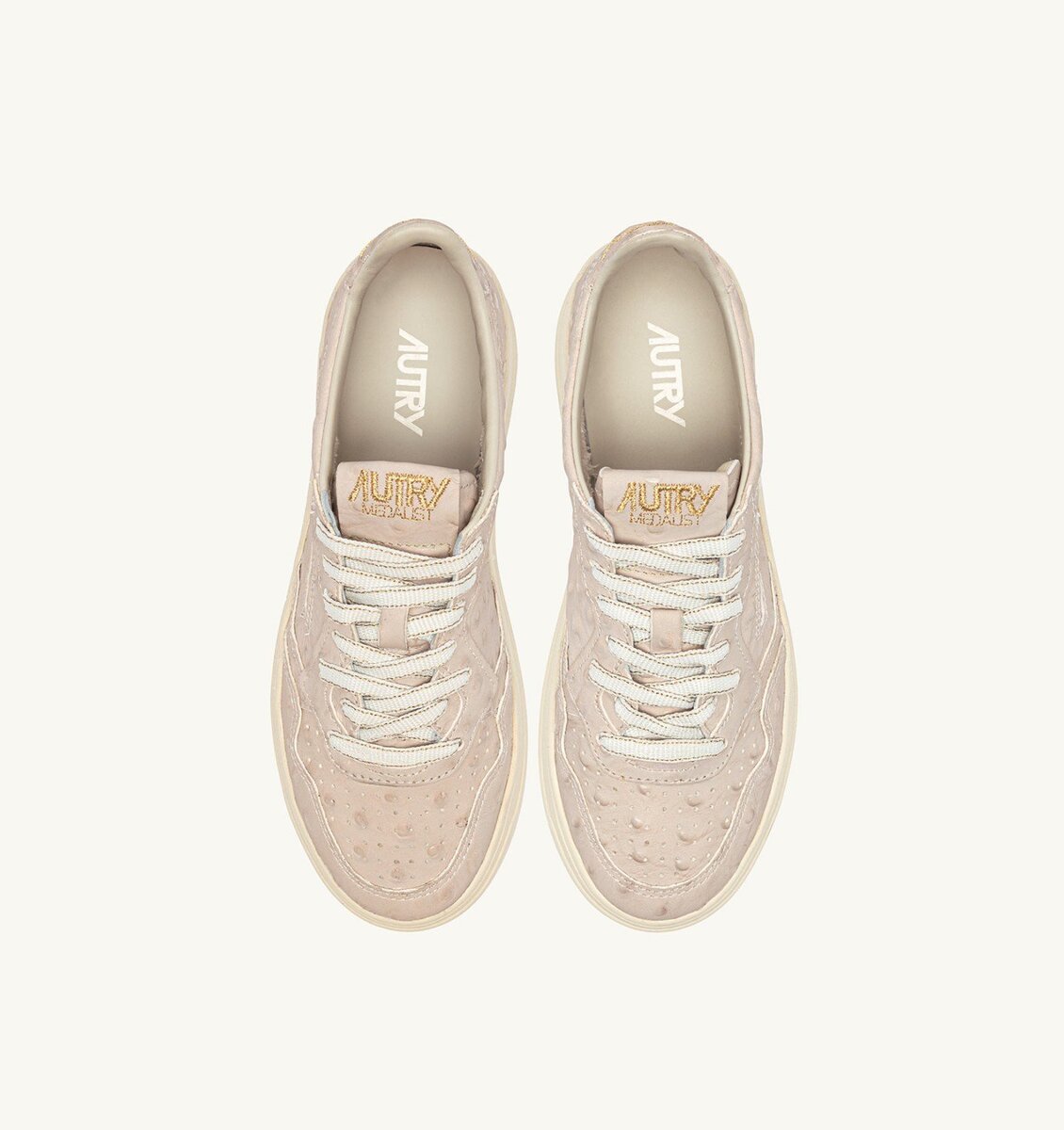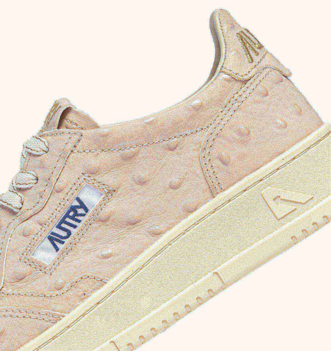 This women’s sneakers is made from pink leather with a distinctive textured finish and elevated by golden accents on the tongue, laces, and heel tab. Micro-perforations at the toe ensure excellent breathability and the details at the outer side and heel are adorned with the Autry logo.