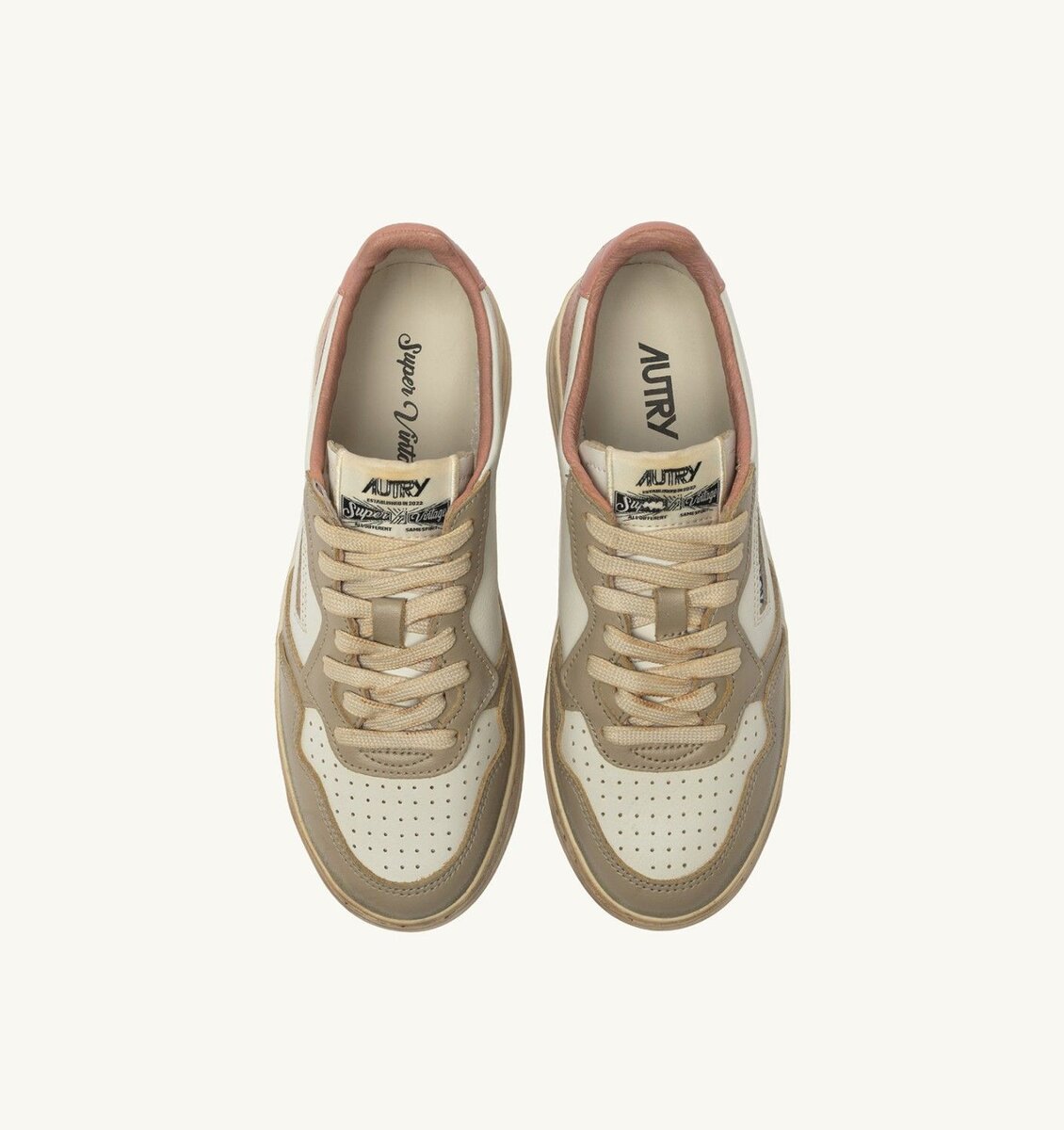 MEDALIST LOW SNEAKERS SUPER VINTAGE IN WHITE CAMEO BROWN AND SAFARI LEATHER