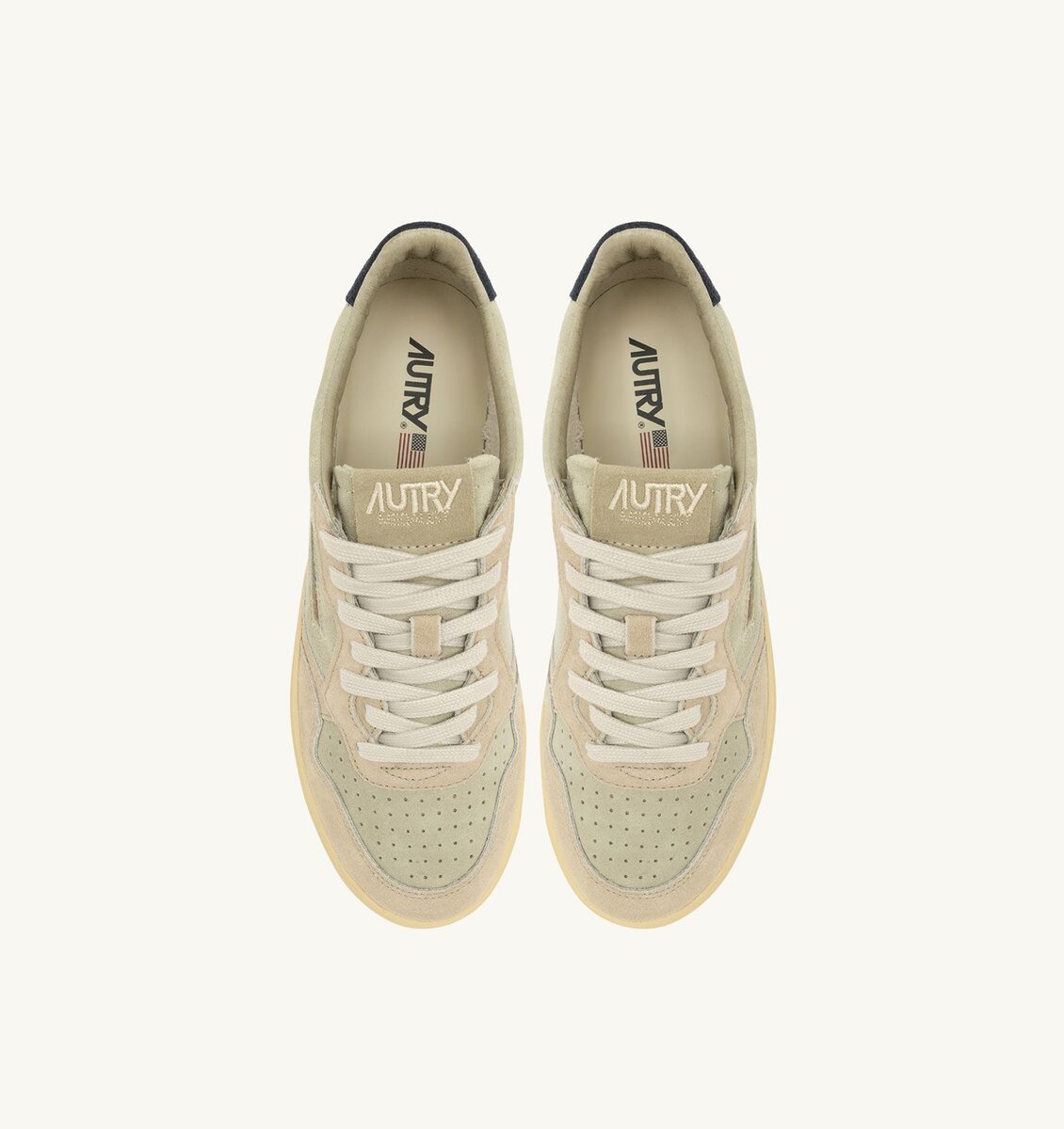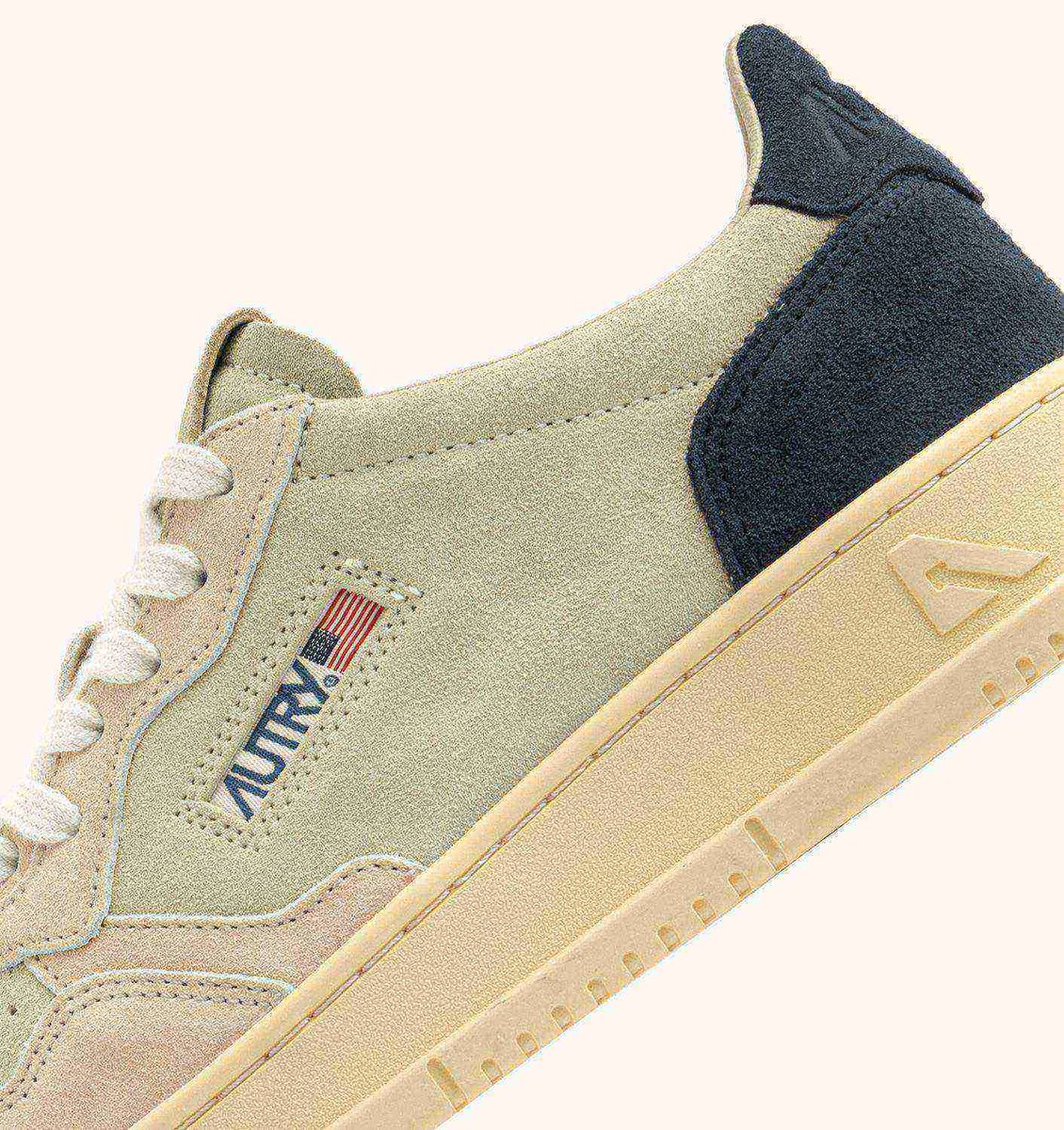 MEDALIST LOW TRICOLOR SNEAKERS IN BEIGE ECRU AND SPACE BLUE SUEDE