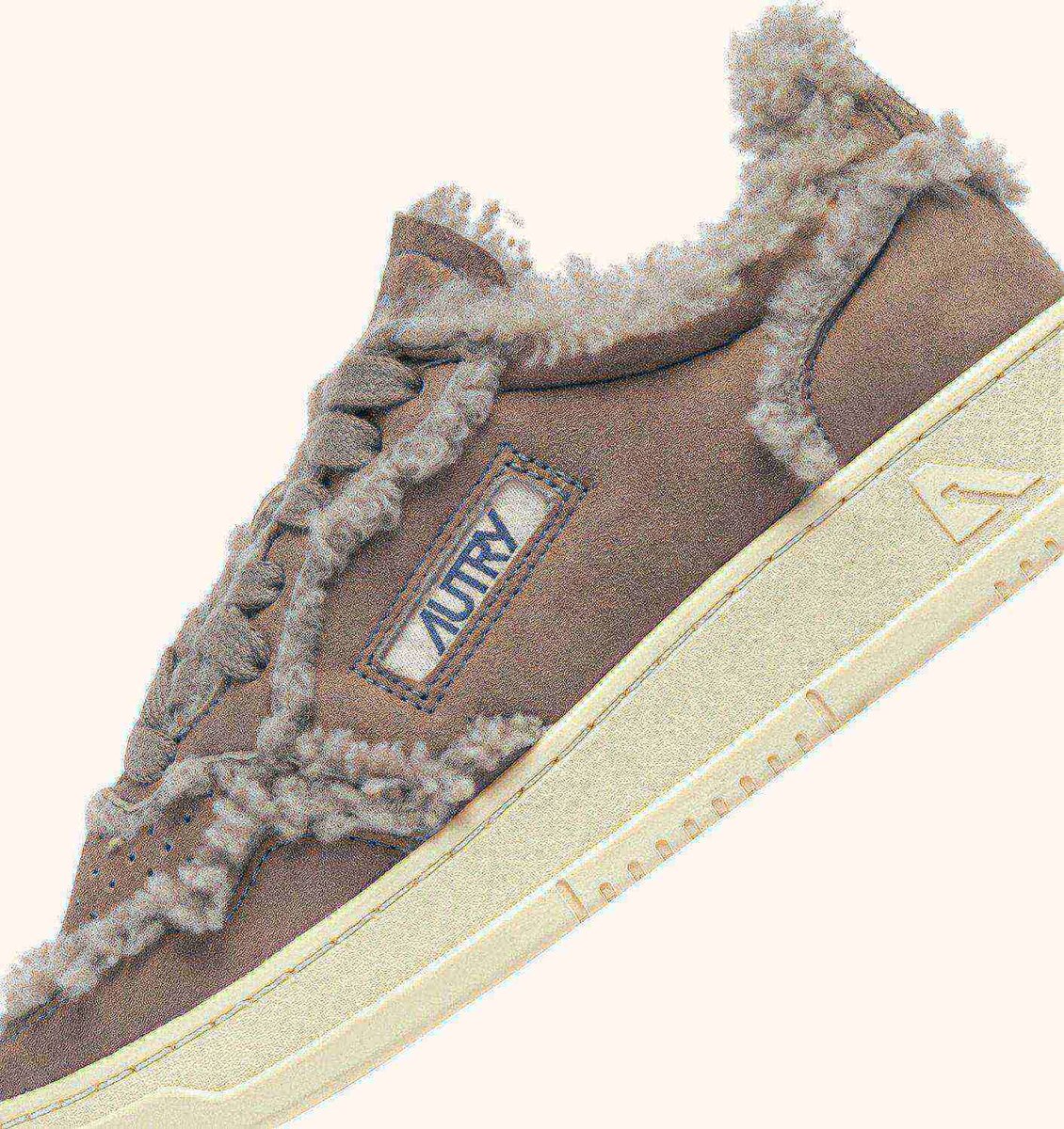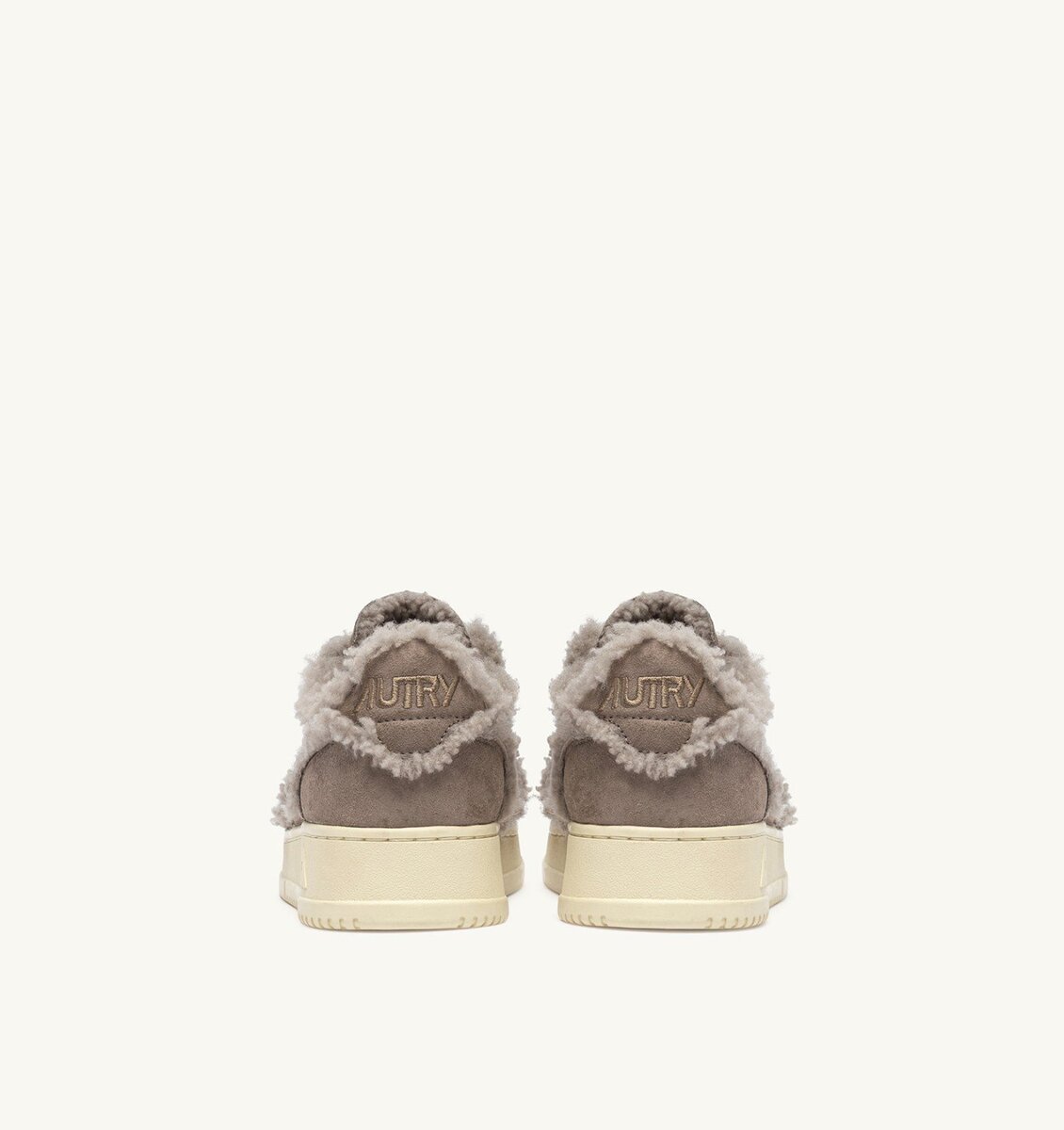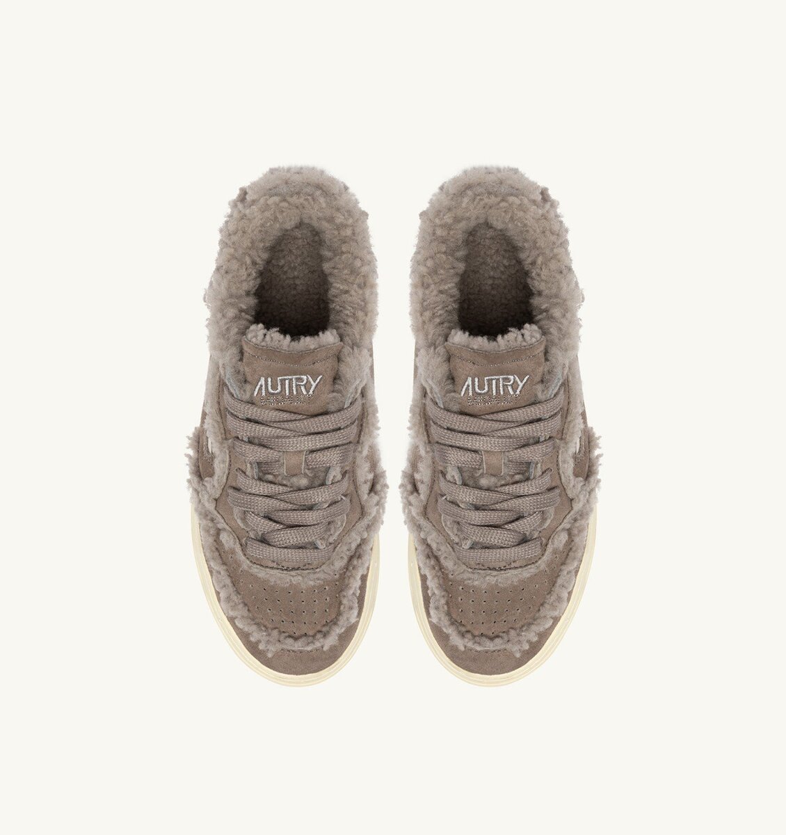 MEDALIST MUTTON SNEAKERS IN TAUPE SUEDE AND SHEARLING