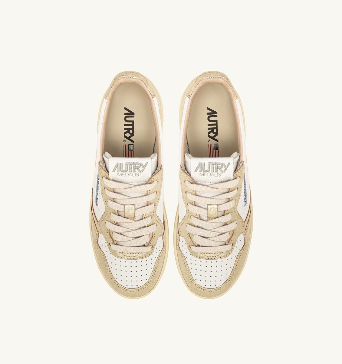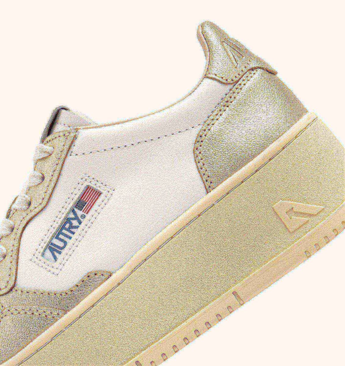 All the signature elements remain unchanged: it’s crafted from supple white leather with laminated platinum-tone details, perforated for breathability, and branded with Autry logo on the side. The rubber platform sole gives the silhouette a literal lift while offering a comfortable, steady stride.