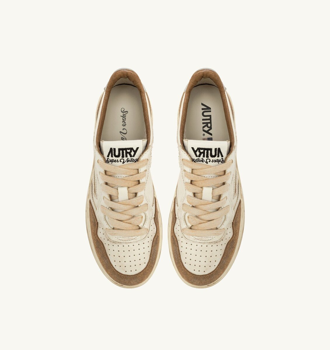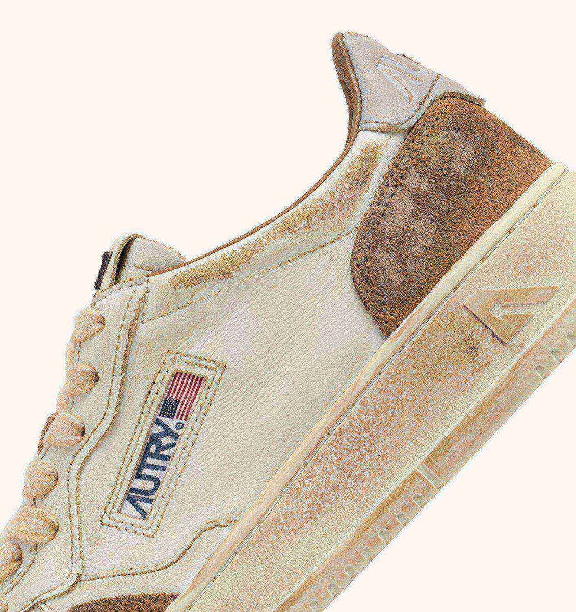 Italian artisanal expertise and Autry creativity come together to emphasize the charm of the Medalist Super Vintage style. Each style stands out for bold distressed elements which give this women’s athletic shoe a truly unique look. Crafted from white leather and finished with cognac suede inserts and a gray leather back patch with embossed logo.