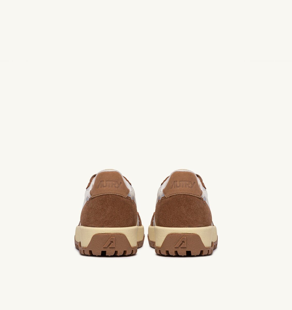 The new Autry Wildpace style stands out for its outdoor-inspired design, featuring technical details that enhance performance. Made of ivory white mesh and brown suede, and enriched with coated TPU details, side insert with a jacquard Autry logo and a nubuck leather back patch with embossed logo.