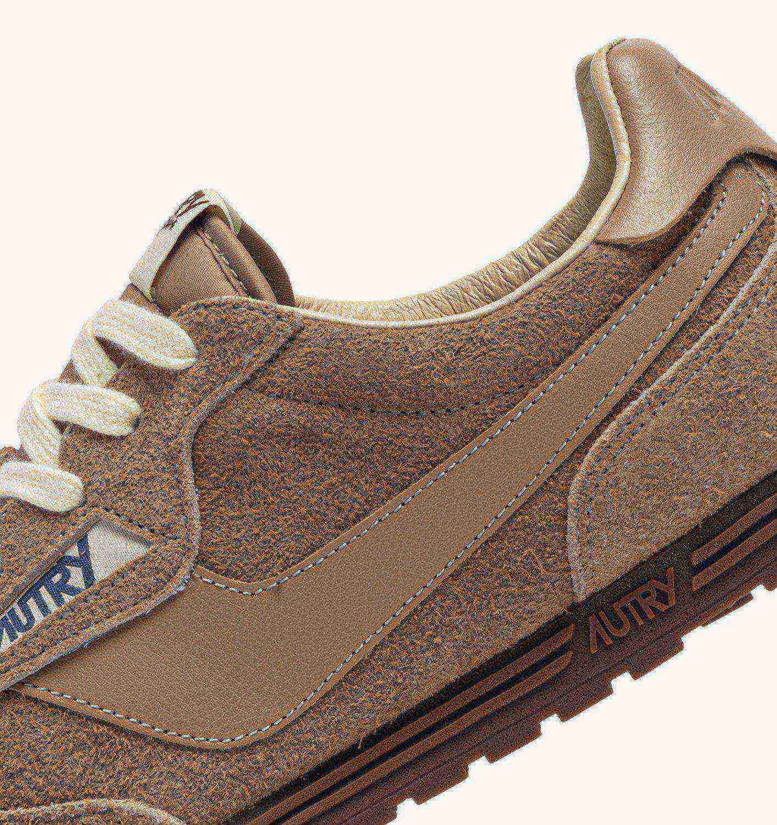 Crafted in beige brushed suede with tone-on-tone leather side inserts, the Windspin features a sleek, streamlined silhouette. Its flat, dynamic profile embodies Autry’s signature fusion of vintage charm and modernity. The ultra-flat rubber sole ensures excellent grip on all urban surfaces.