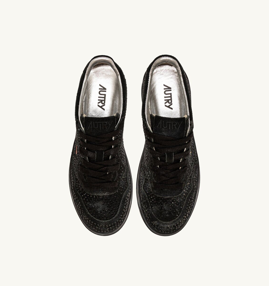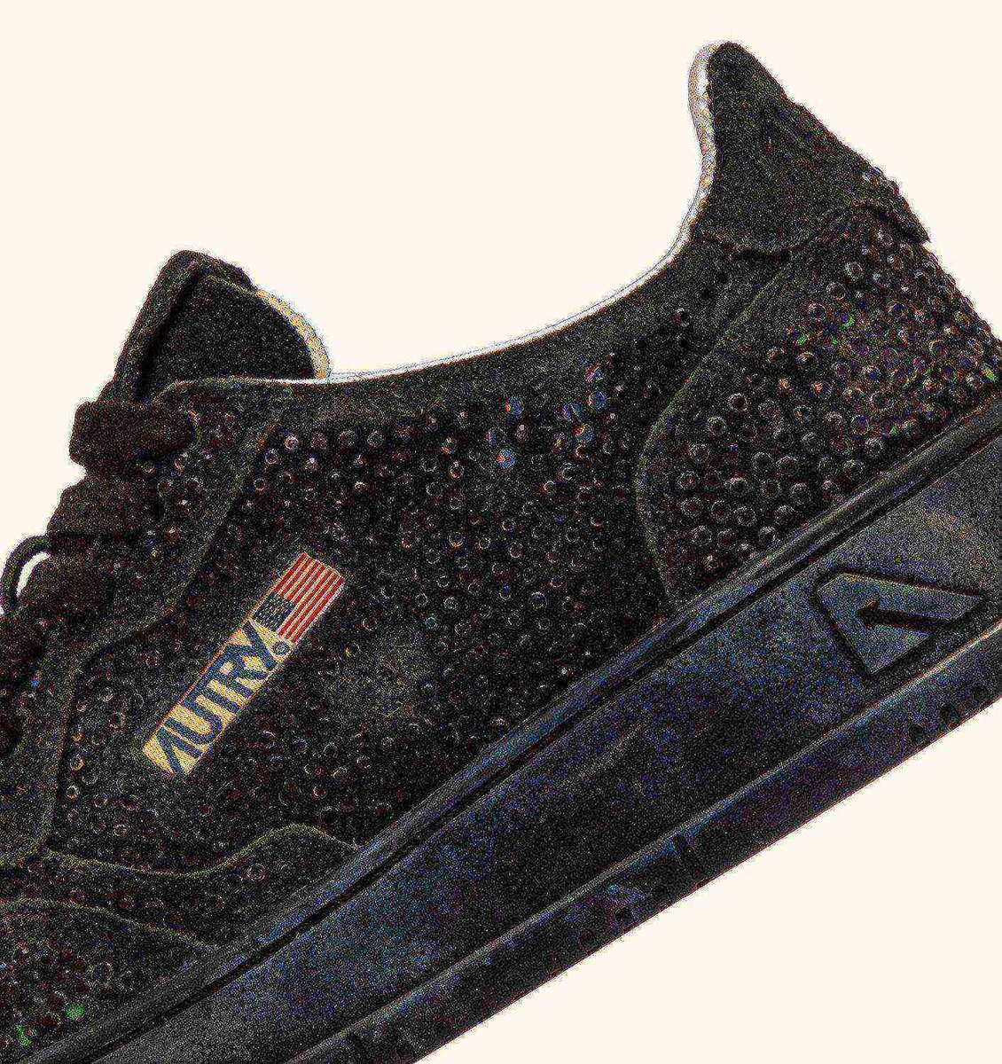 - Suede and micro-rhinestone upper.